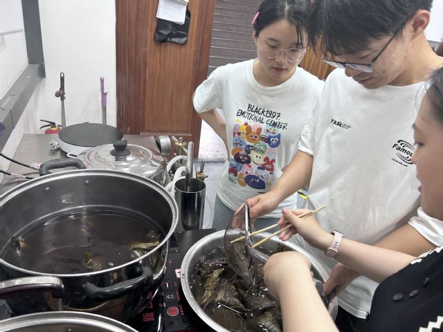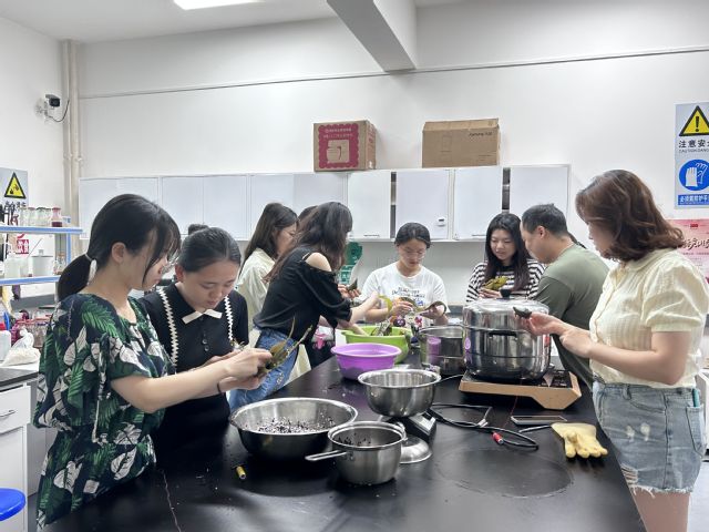 经过大家的辛勤劳作,上百个形态各异的粽子完成了,有尖角状、四角状的,有蜜枣馅、红豆馅、蛋黄馅的等等。随后一同将粽子放入锅中蒸煮,期待着最终的成果。最后,大家一起品尝这美味的成果,共同分享这特殊的时刻,让端午粽香飘满整个实验室。