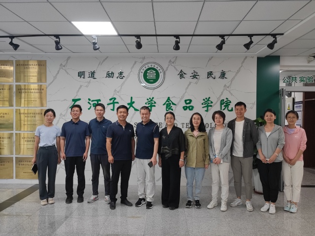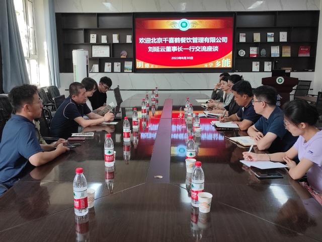 8月30日,北京千喜鹤餐饮管理有限公司刘延云董事长一行来到bat365在线中文官方网站参观交流,食品学院副书记雷建鹏、副院长任亚梅、果蔬贮藏保鲜方向师生代表参加了座谈交流会。
