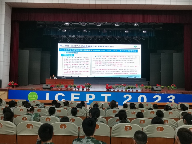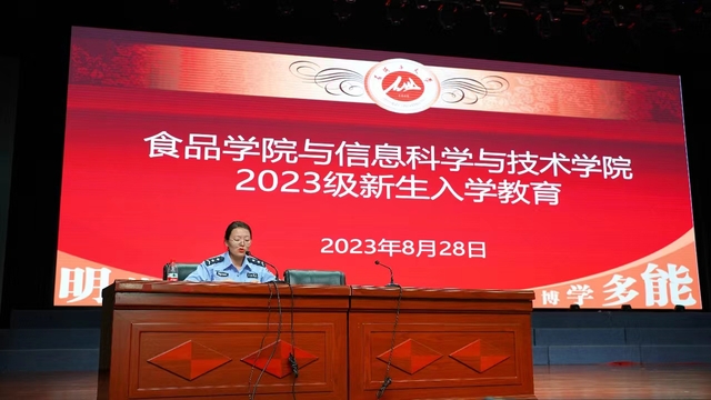 为帮助新生完成角色转换、实现学业发展,引导帮助新生适应大学生活、确立人生目标、提升思想境界,8月28日,食品学院和信息科学与技术学院在北区大会堂联合开展2023级新生入学教育。活动邀请东明新村派出所教导员丁杰、马霞玲警官,党委学生工作部心理健康教育中心教师毛思瑜,信息科学与技术学院团委书记张忍老师围绕法律法规、预防电信及网络诈骗、心理健康、军训纪律、学风建设等方面展开讲解,食品学院和信息科学与技术学院800余名本硕新生参加会议。