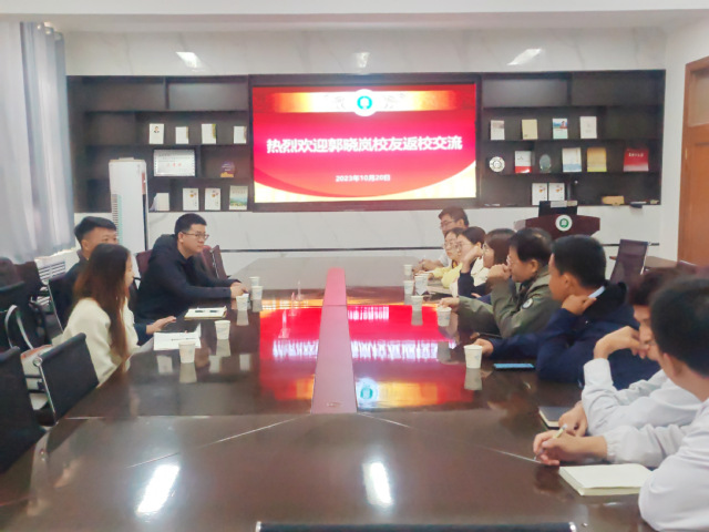 10月20日,2010年毕业于bat365在线中文官方网站食品科学与工程专业的校友郭晓岚陪同可克达拉安琪酵母有限公司副总经理左涛返校交流,食品学院党委副书记雷建鹏、食品微生物与生物技术研究中心倪永清教授及师生代表参加交流座谈会。