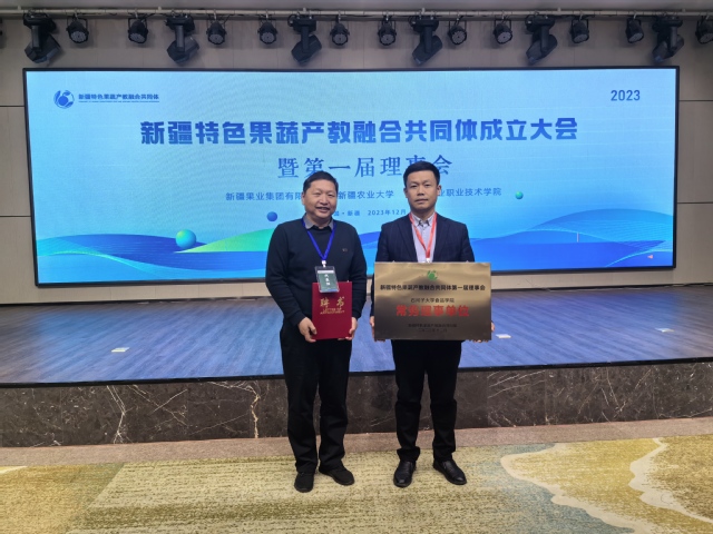 121日,新疆特色果蔬产教融合共同体成立大会暨第一届理事会在新疆农业职业技术学院召开,本次会议由新疆果业集团有限公司、新疆农业大学和新疆农业职业技术学院联合主办,来自疆内外果蔬行业龙头企业、高等院校、科研机构、行业协会和上下游企业等100余家单位参加会议。新疆维吾尔自治区农业农村厅、教育厅、林草局、供销社等有关部门领导到会并致辞。