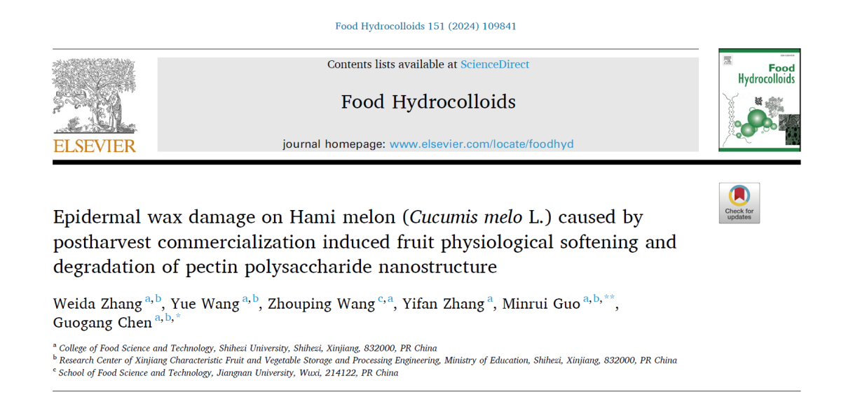【学术前沿】采后商品化处理造成的哈密瓜表皮蜡质损伤诱导果实生理软化以及果胶多糖纳米结构的降解