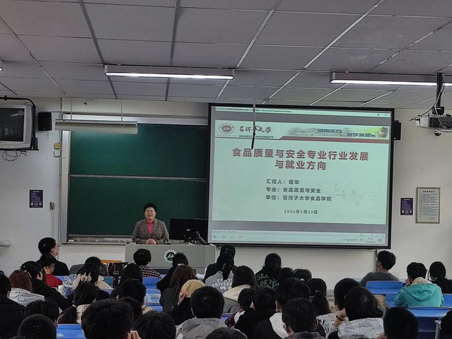 接着,姬华老师着重介绍了食质专业师资队伍和专业学科平台,鼓励同学们都应该认真学习,积极参加各类竞赛,挖掘自己的潜能,在大学中不断提升综合素质,具备良好的专业应用能力和实践创新能力。结合专业往年毕业生成功考入公务员、企事业单位或国内外深造的案例,极大的鼓舞了学生。姬华老师表示热烈欢迎各位同学选择食品质量与安全专业。