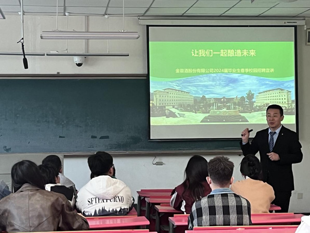 最后,金徽酒股份有限公司的工作人员与同学们进行了交流互动,在座的同学们针对各方面的情况进行了踊跃提问,陈保康也从企业专业人员的角度为学子们进行耐心细致地解答,并表示热烈欢迎食品学院毕业生们到公司就业,成为并肩战斗的伙伴。