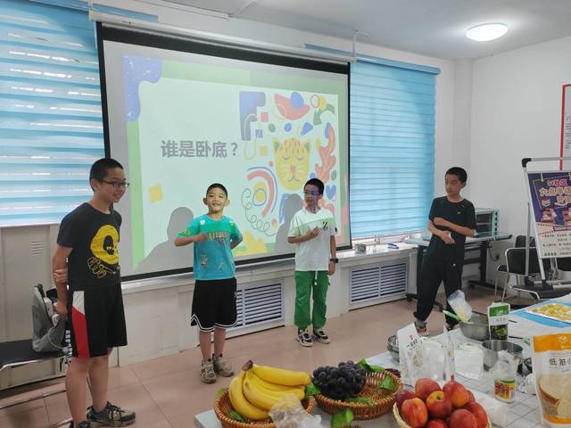 “这种食物是蒸的”“这种食物是白色的”......参与游戏的小朋友们正按照顺序描述着手卡里的食物。食品版的“谁是卧底”游戏正在开展。实践团成员们准备了5组命题,取材于身边食品,让小朋友们在游戏中仔细观察食品,找寻各类食品中的异同。