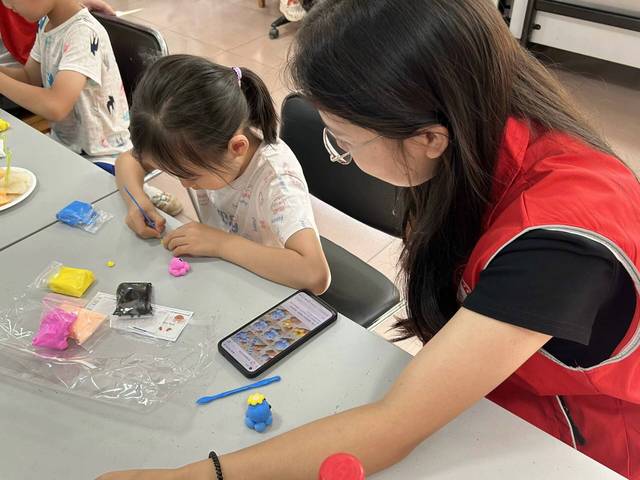 实践团成员们准备了各色彩泥和各种食材照片,邀请小朋友们动手制作彩泥模型,并且分享对应食材的科学知识。“茄子皮抗氧化,对身体好”“苹果富含维生素,应该多吃”小朋友们展示手中作品的同时,学习着食品背后的科学知识。