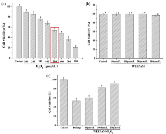 本研究从绵羊血浆蛋白水解物中分离得到三种新的抗氧化肽:WEEPAM(761.84 Da)、SLHFME(762.87 Da)和HCTTFMI(852.03 Da)。3种多肽均具有较强的ABTS自由基清除能力(IC50:0.14±0.02~0.47±0.03 mg/mL)、O2-自由基清除能力(IC50:1.16±0.09~1.84±0.11 mg/mL)和DPPH自由基清除能力(IC50:0.51±0.08~0.81±0.03 mg/mL)。其中,WEEPAM对体外消化的抵抗力最强。此外,WEEPAM对过氧化氢诱导的Caco-2细胞氧化损伤具有较强的保护作用,其机制是浓度依赖性地增加抗氧化酶(SOD、CAT和GSH-Px)的活性,以清除过量的活性氧(ROS)、降低丙二醛(MDA)含量。因此,这些发现为绵羊血浆蛋白多肽作为新型抗氧化剂提供了立足点,并为后续研究绵羊血浆蛋白抗氧化肽的构象关系和作用机制提供了理论基础。