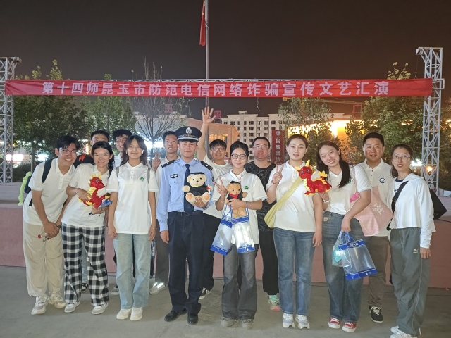 为进一步增强师市广大职工群众的防范电信诈骗的意识和能力,有效遏制电信诈骗案件的发生,bat365在线中文官方网站食育先锋实践团成员在昆玉市时代广场表演了一场别开生面的情景剧——《全民反诈 天下无诈》。