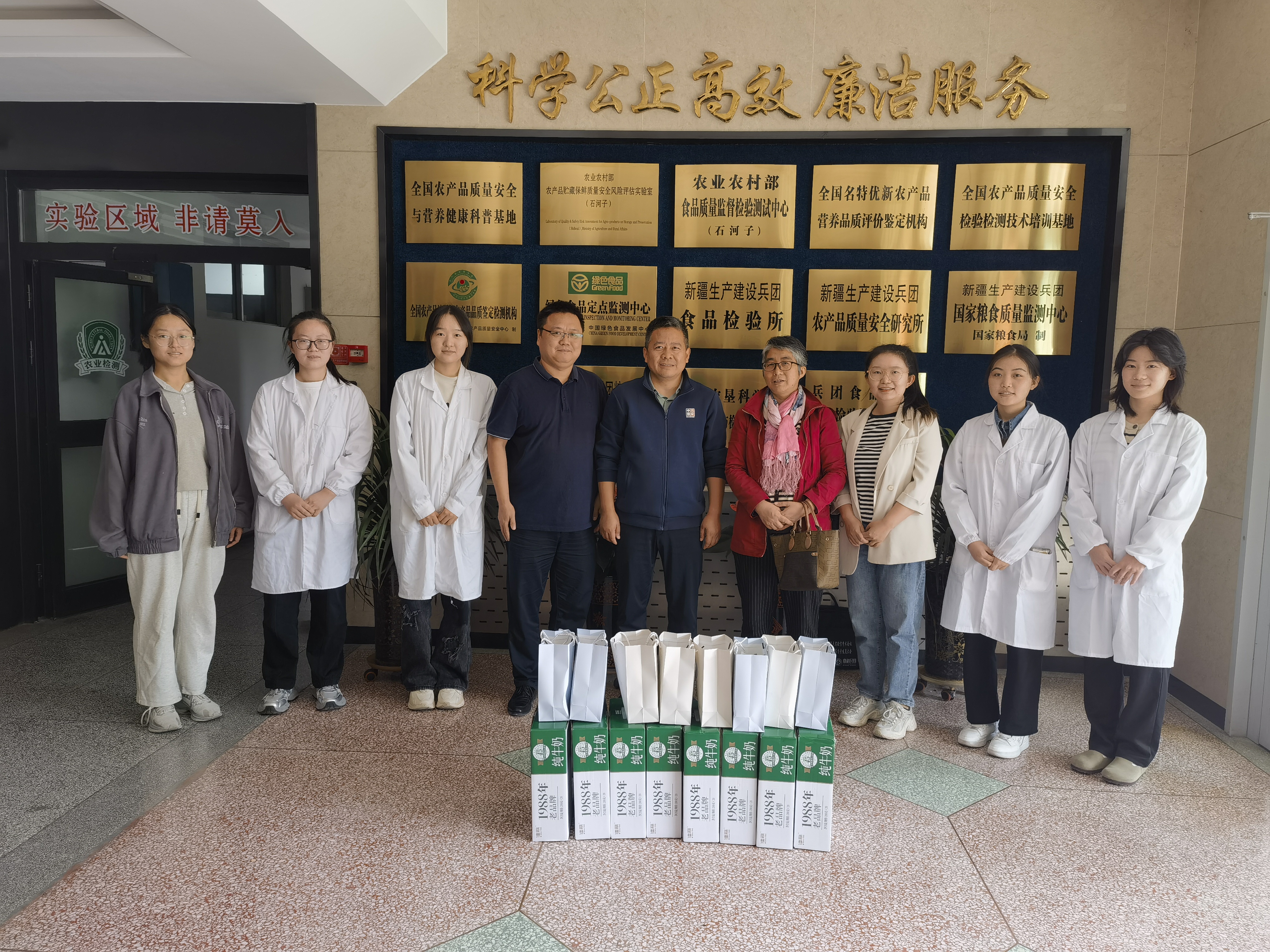 为深入了解学生毕业实习的具体情况,强化实习过程管理并加强校企合作,在中秋佳节即将来临之际,食品学院副院长魏长庆等一行人先后赴新疆农垦科学院农业部食品质量监督检验测试中心、石河子海关、第八师石河子市质量与计量检验所、天山云牧乳业有限责任公司和张裕巴保男爵酒庄等五家企事业单位实习点,看望慰问了正在进行毕业实习的学生。