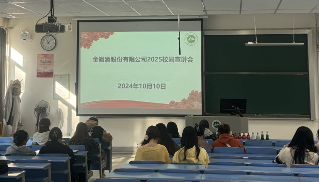 为积极响应学校就业工作要求,拓宽校园招聘渠道,推动毕业生就业指导工作,10月10日上午,金徽酒股份有限公司在绿3-101教室举办专场招聘宣讲会。金徽酒股份有限公司人力资源部经理任岁强到场宣讲,学院党委副书记雷建鹏、学办负责人张苗苗参会,食品学院30余名应届毕业生参与本次宣讲会。