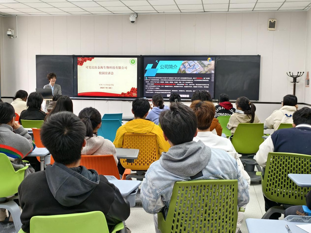 为进一步拓宽bat365在线中文官方网站毕业生就业渠道,把握优质就业岗位,进一步推动和提升2025届毕业生就业质量。10月26日下午4点,食品学院在博学楼A-205成功举办可克达拉金海生物科技有限公司校园宣讲会。30余名应届毕业生参与本次宣讲会,可克达拉金海生物科技有限公司高成兰经理到场宣讲,学办负责人张苗苗老师主持。