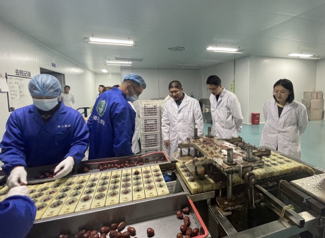 在第十四师服务期间,陈国刚及其团队成员与和田早上农业开发有限公司企业负责人交流时,针对“去除红枣粉中的不良风味”问题指出,在加工中采用低温蒸煮、低温发酵等工艺,同时避免使用漂白技术,可有效减少红枣不良风味的产生。在昆玉市丰茂果品有限公司,陈国刚针对“红枣蜜饯生产过程中脱除枣皮枣核效率低”问题,与张龙等企业负责人和工程技术人员深入交流,建议通过浸泡结合短时蒸汽处理帮助红枣软化脱皮,并采用专用脱核器械实现快速大批量去皮脱核。