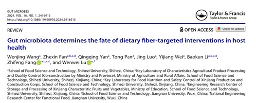 近日,食品学院方志锋副教授指导研究生在gut microbes(中科院一区Top, IF=12.2)发表了题为“Gut microbiota determines the fate of dietary fiber-targeted interventions in host health”(肠道菌群决定膳食纤维干预宿主健康的命运)的原创性综述论文。