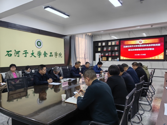 根据校党委统一安排,2024年11月26日,五届石河子大学党委巡察食品学院党委意见反馈暨整改动员部署会召开。校党委常委、纪委书记、巡察工作领导小组副组长牛新民、校党委常委、副校长李孝光、巡察办主任刘怀锋、第二巡察组组长胡昌娃、副组长宗效才等同志参加会议。食品学院党委书记程卫东主持会议。