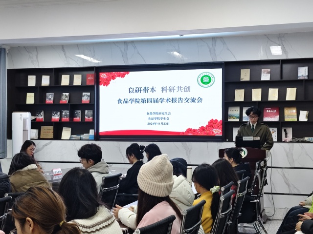 为进一步强化学术氛围,推动学院学术水平的全面提升发展,发挥榜样的示范引领作用,激发学生的学术热情,食品学院于11月23日下午16:30在学院220会议室成功举办了第四届第二期“以研带本·科研共创”学术报告交流会。此次交流会采用了“以研带本”的核心理念,通过研究生的学术榜样作用,引领和带动本科生的学术成长,实现智慧碰撞与经验共享。学院教师文向圆和研究生李慧就自己的学术成果进行汇报,学院60余名师生参加本次学术报告交流会。