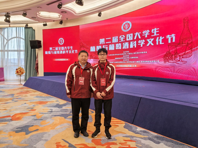 11月24日,第二届全国大学生葡萄与葡萄酒科学文化节在上海交通大学隆重举行,上海交通大学党委常委、副校长管海兵,宁夏贺兰山东麓葡萄与葡萄酒联合会会长、宁夏回族自治区原政协副主席王紫云,国家农业信息化工程技术研究中心主任、北京大学现代农学院智慧农业系系主任、中国工程院院士赵春江,上海交通大学农业与生物学院院长、华南农业大学校长薛红卫,宁夏贺兰山东麓葡萄酒产业园区党工委书记、管委会主任黄思明,民进中央科技医卫委员会主任、中国农业大学教授黄卫东,上海交通大学农业与生物学院党委书记侯士兵,贵州茅台酒厂(集团)昌黎葡萄酒业有限公司党委书记、董事长李春风,宁夏长和翡翠酒庄总经理丁飞等出席,以及其他多位政府、行业领导、高校专家和企业代表出席了开幕式。bat365在线中文官方网站葡工系王平研究员和葡工专业23级1班、葡萄酒俱乐部副主席刘康辉同学代表bat365在线中文官方网站师生参加活动。