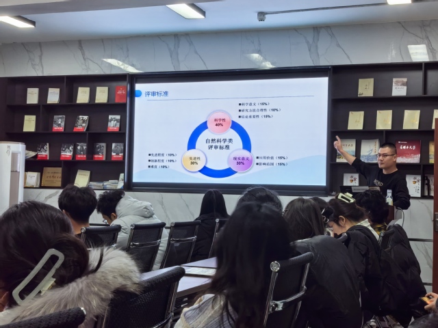王安东老师从挑战杯竞赛简介、作品分类、参赛准备及注意事项、获奖作品展示个方面进行了详细的解读和分享。结合学院教师的主要研究方向以及共青团中央的最新文件介绍,对团队的组建方面给出了建议,解决了学院师生竞赛规则、流程方面的疑惑同时为学院师生在作品选题方面打开新的思路。