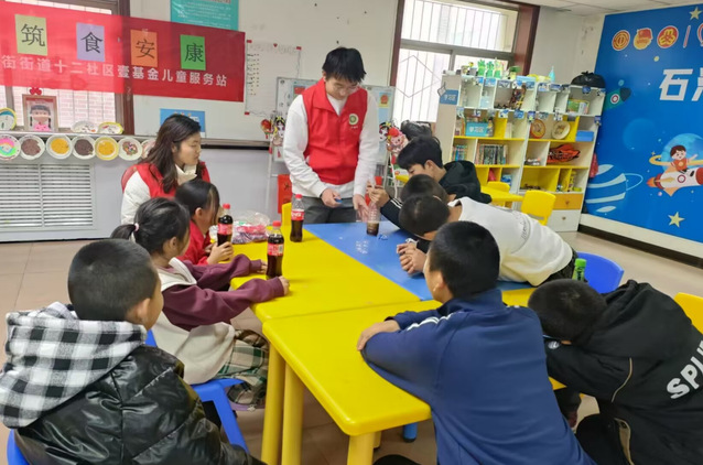 为向社区青少年普及食品安全知识,提高食品安全意识,1130日,食品学院青年志愿者协会“七彩红柳”社区服务队在老街街道12社区组织开展“小手拉大手 食安童心——社区食品安全科普行”志愿活动,主题为“认识碳酸饮料”。