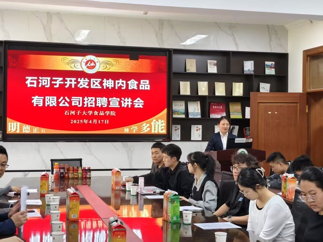 为全面提升2025届毕业生的就业质量,推进学院就业工作进展,2025年4月17日下午,在食品学院220会议室成功开展招聘宣讲会。石河子开发区神内食品有限公司党委委员、纪委书记梁涛,副总经理王耀东等公司骨干到场宣讲,学院团委书记刘桂青、团委书记刘桂青,学办主任张伟达参会,食品学院党委书记程卫东对神内食品公司招聘团队一行表示热烈欢迎和问候,本次宣讲会共计来自食品学院和经济管理学院等吸引30余名同学参加,其中17名同学对本次招聘岗位表示强烈意愿,并投递简历。
