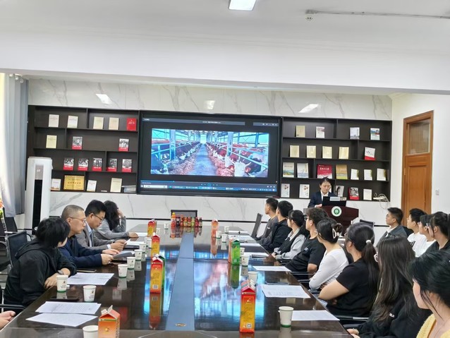会议伊始,人力资源部负责人司海霞通过播放纪录片,向每一位同学从企业文化,企业规模和战略发展等方面展示石河子开发区神内食品有限公司。紧接着来自石河子大学法学院法学专业2019届学生胡文博通过PPT并结合自己入职神内以来的发展情况向同学们介绍目前公司的人员管理、核心业务、岗位需求以及薪资待遇等同学最为关注的方面情况,让同学们对企业有更全面的认识和了解。