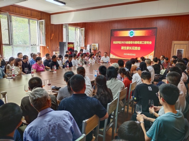 为进一步加强家校沟通合作,凝聚教育合力,为学生营造良好的成长环境,8月30日,葡萄与葡萄酒工程系2025级新生家长见面会在食品学院主楼108品酒室成功举行。葡工系领导、教师代表、各年级优秀学生代表及新生家长共计120余人齐聚一堂,共话人才培养,同绘成长蓝图。会议由系副主任高飞飞主持。