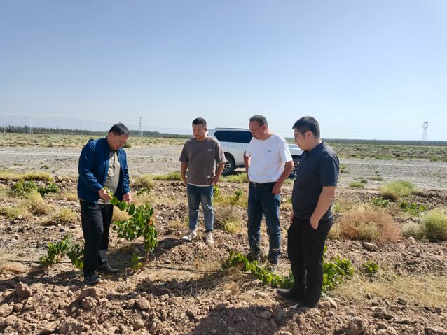 在乌恰县西鸽酒庄新疆项目基地,调研组查看了酿酒葡萄品种示范基地、节水灌溉示范园,围绕三方共同承担的自治区林草局葡萄酒产业科研专项,进行技术交流和阶段工作安排,西鸽酒庄基地负责人栗飞彦、王建国陪同调研。在阿图什市海德坤无花果三产融合产业园,调研组在海德坤农业科技有限公司董事长王省业的陪同下,考察了果酒果干深加工项目、设施无花果种植基地和企业技术中心,双方就技术研发团队组建、企业技术中心平台建设进行了深入交流。