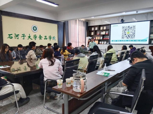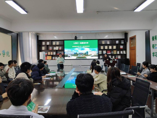 为深入贯彻落实学校关于毕业生就业工作的部署,进一步拓展校企合作平台,助力2026届毕业生实现高质量就业,11月7日上午,金徽酒股份有限公司应邀在我院220会议室举办了2026届校园专场招聘宣讲会。金徽酒股份有限公司人力资源部经理任岁强担任主讲人,食品学院党委副书记丁成、学办老师张伟达出席活动,学院2026届本科及研究生毕业生共40余人积极参与。