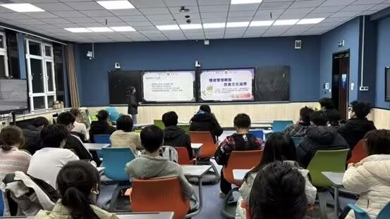 演讲过程中,PPT以图文结合的形式将专业知识具象化,心理委员的主持则兼顾节奏与互动,让原本抽象的营养心理学知识变得易懂、实用,现场同学不时提笔记录,将“食愈”技巧纳入自己的生活清单。